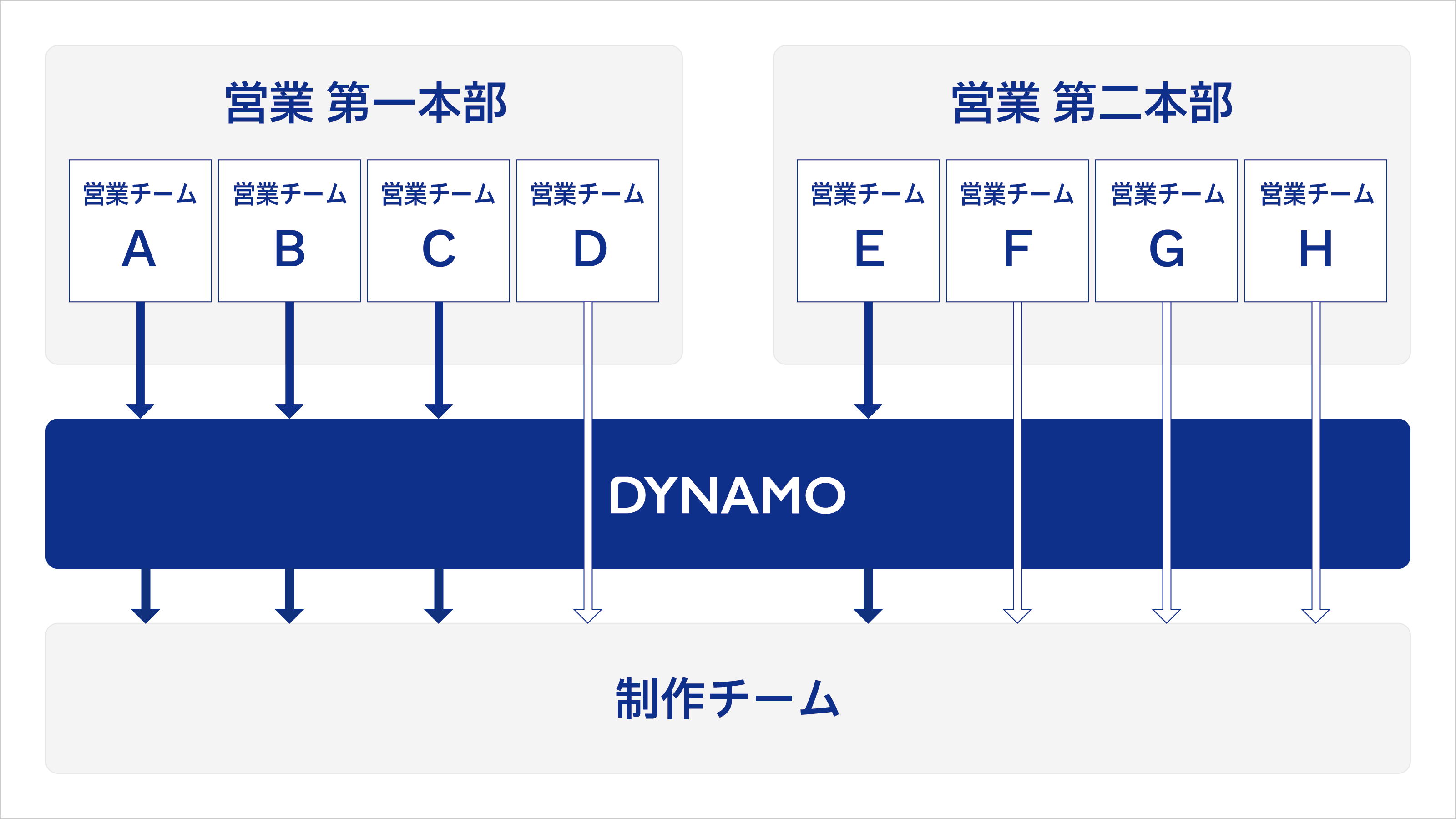 ▲複数ある営業チームから、要件定義が必要なもの、クリエイティブの戦略を立てる必要がある専門性の高い案件に対してDynamoがサポートを行う