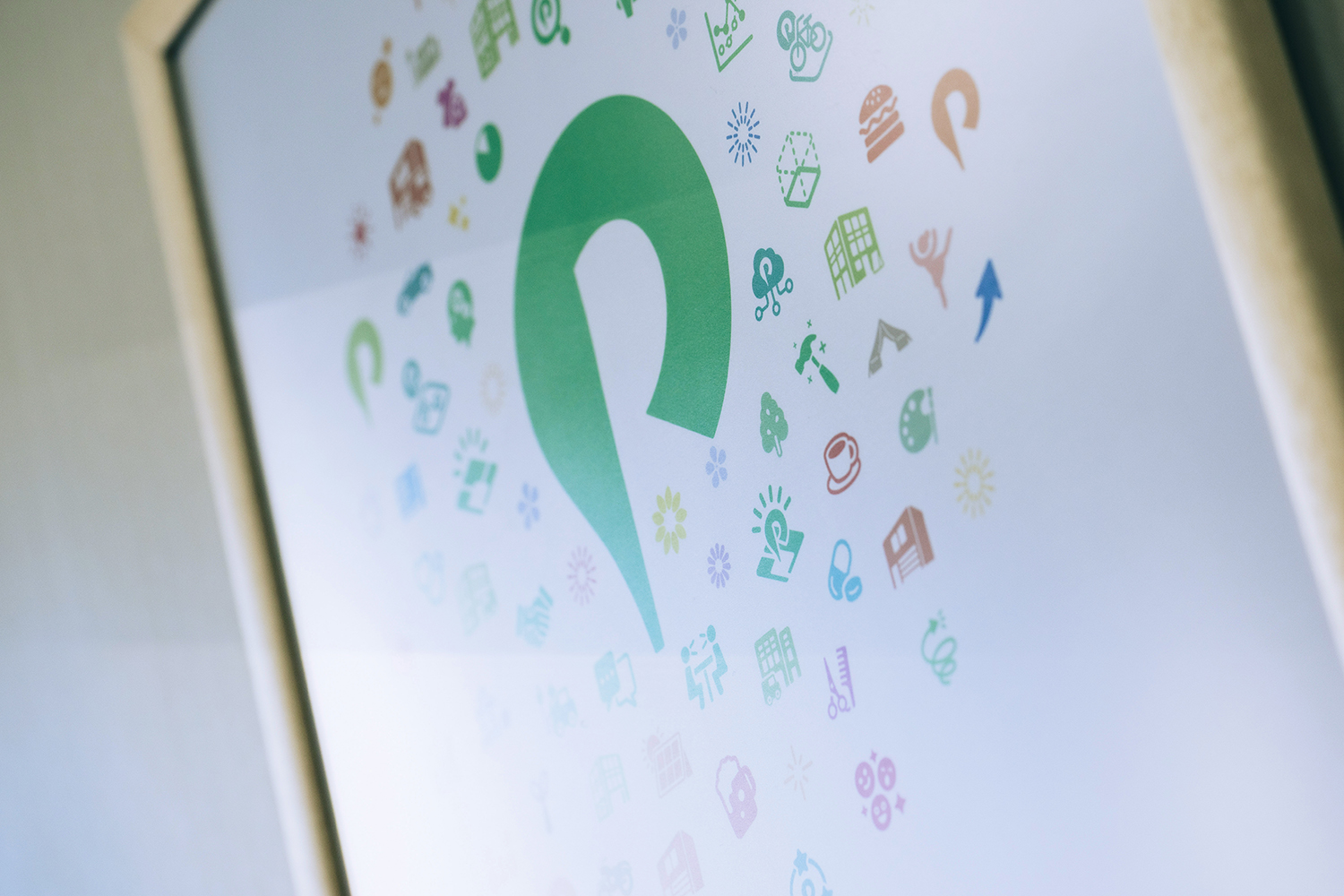 マップの「ピン」をイメージしています。フィル・カンパニーの頭文字「P」でもありつつ、まちのスキマにピンを挿していく、という意味を込めています。