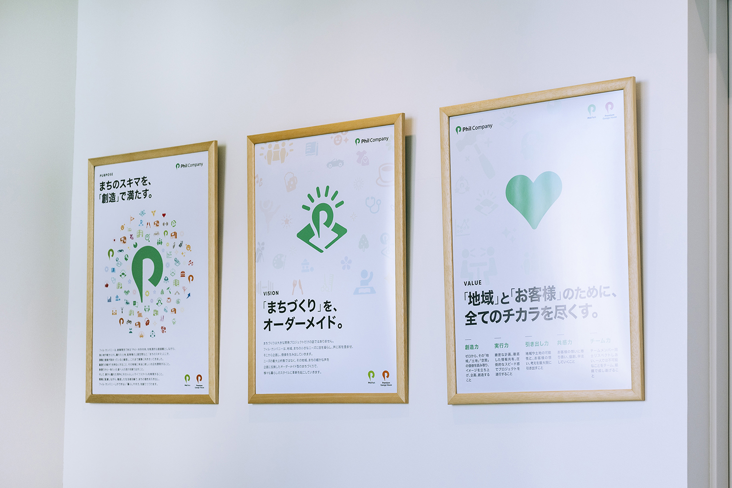 駐車場の上部空間や狭小地、駅から離れた土地など、活用が難しい「まちのスキマ」の空間ソリューション事業などを展開する株式会社フィル・カンパニー。2023年の経営体制の変更を機に、社内外に向けて「自分たちは何者で、何を大切にし、どこへ向かうのか」を一貫した言葉と表現で伝える必要がありました。